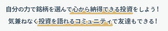 基礎学習と応用実践の機会、そして仲間同士で深く投資を語り合う場を提供し、 自律して自分で学び考え、 自己責任と自己判断で投資ができるように一緒に頑張りましょう。